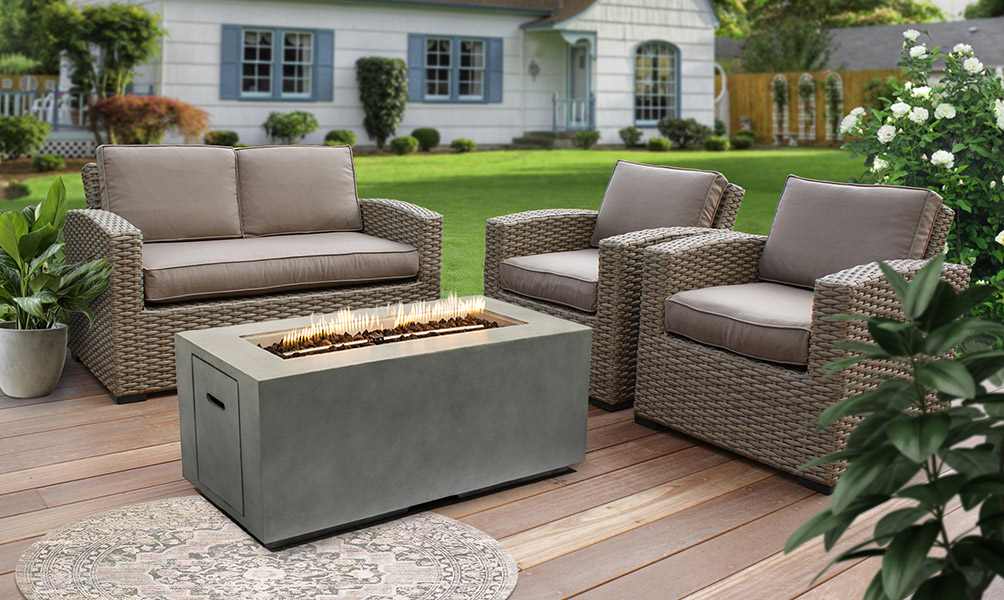 50K BTU/15.5KW, GRC Material with Faux Concrete Finish, Includes Protective Cover, Natural Lava Rock & Tank Seat