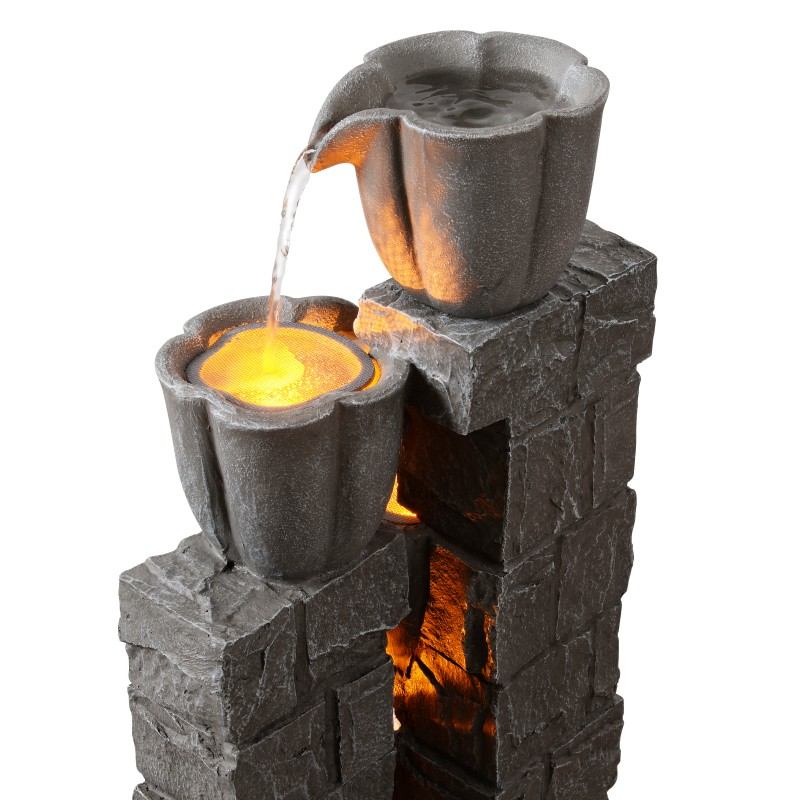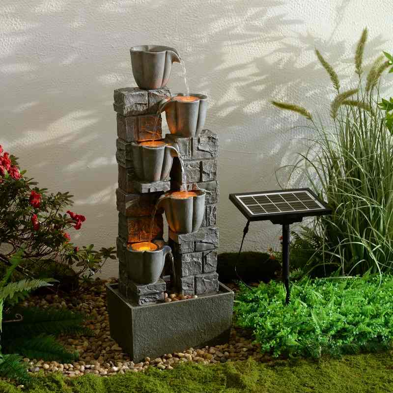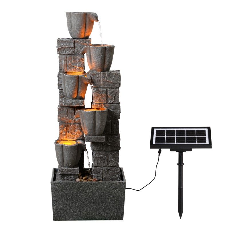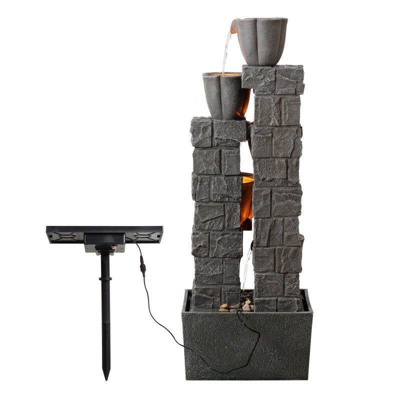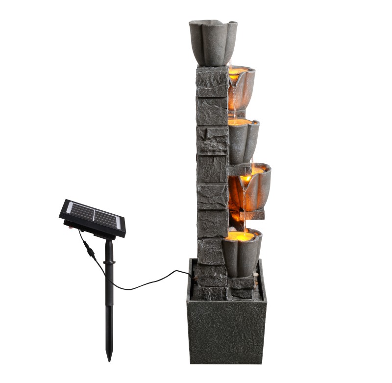 Solar Powered Water Fountain with Tulip Design – Natural Grey Outdoor Garden Fountain | Eco-Friendly & Decorative