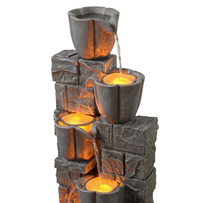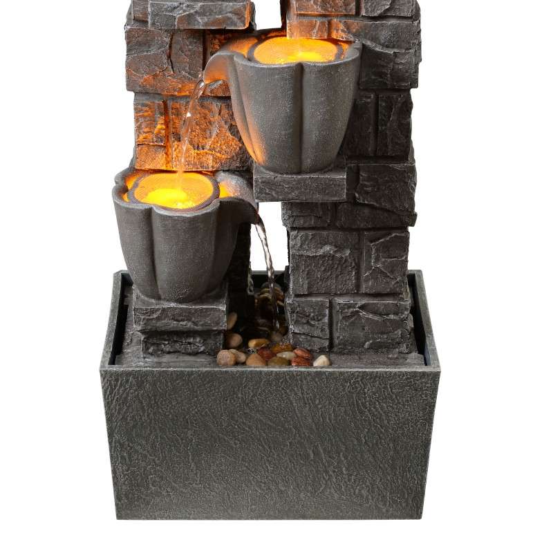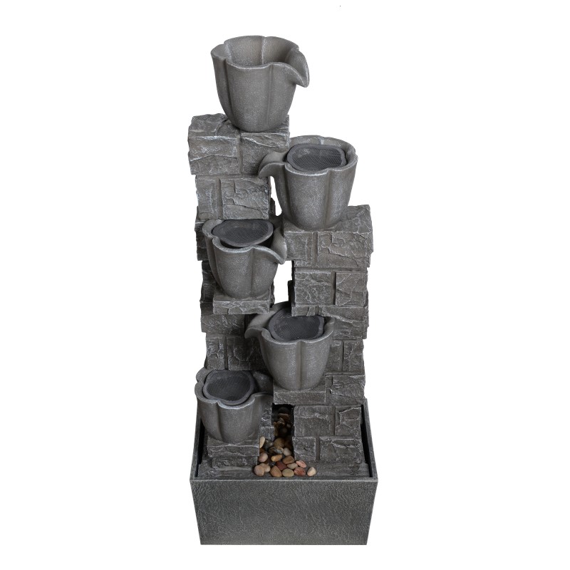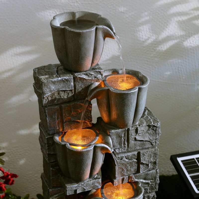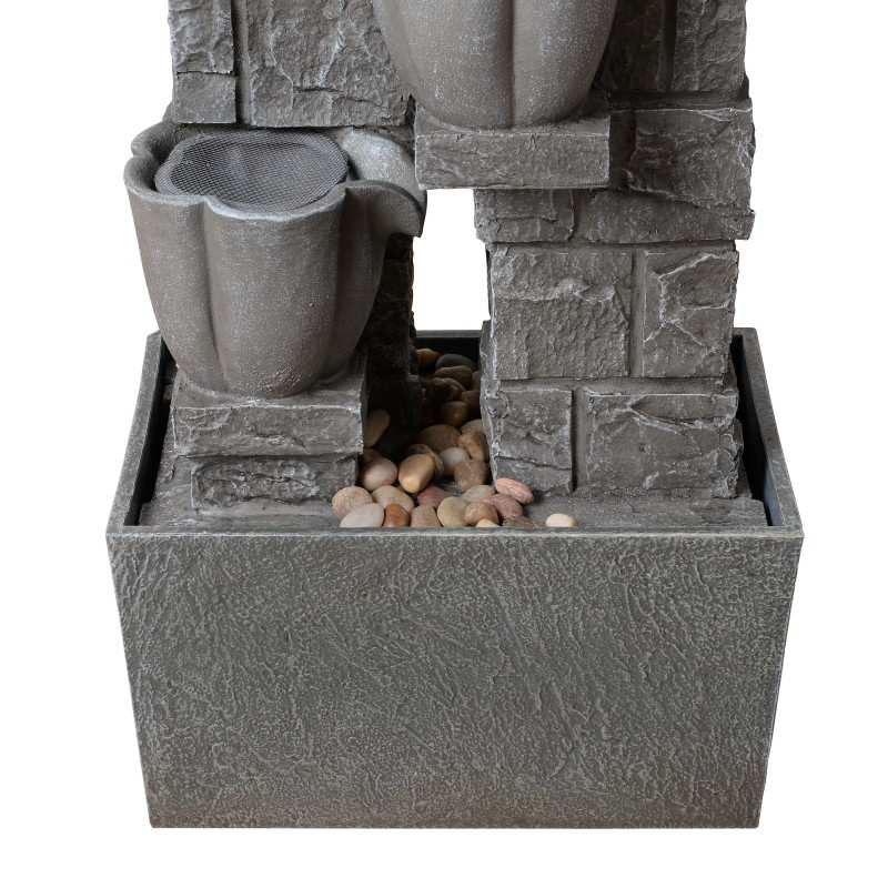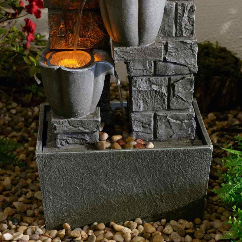 3、Natural Grey Stone Finish – The neutral grey color blends beautifully with gardens, patios, and decks, enhancing any WarmGarden outdoor fountain setting with timeless elegance.